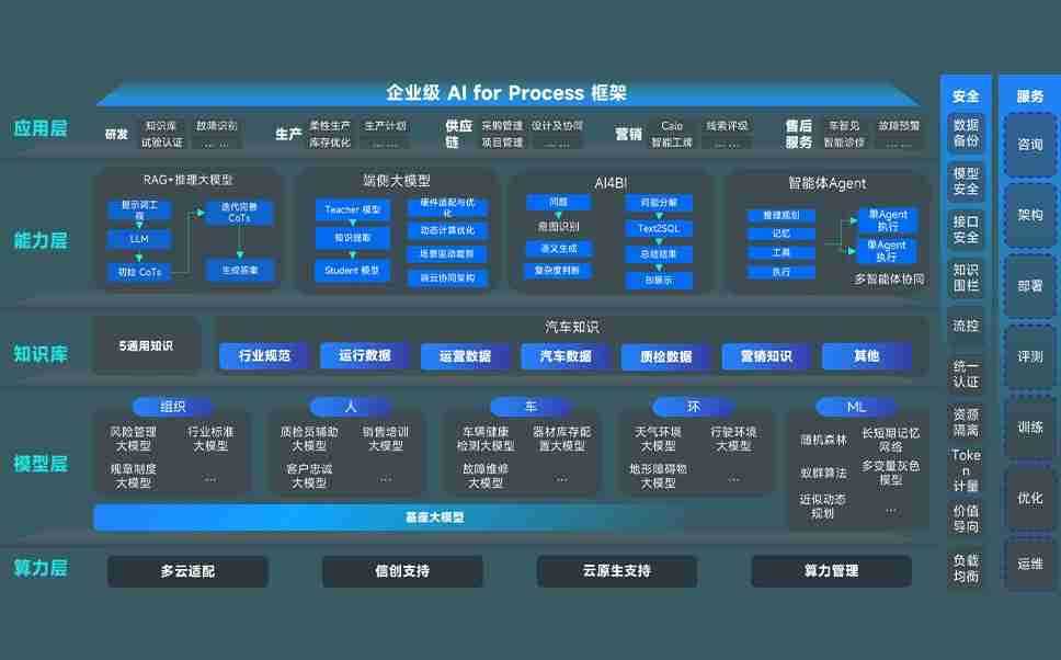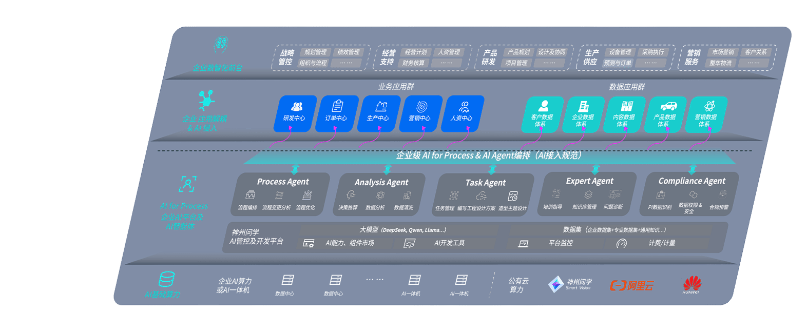 端到端的一站式AI工作空间深度融合了从企业战略规划到日常经营的全流程业务板块,,,,定向解决车企内部领域多、、、、部门多、、、链条长、、、、场景碎片化等难题,,,支持车企快速构建以AI为核心的生产力写作体系,,,,实现任务执行与AI能力的无缝集成与交互